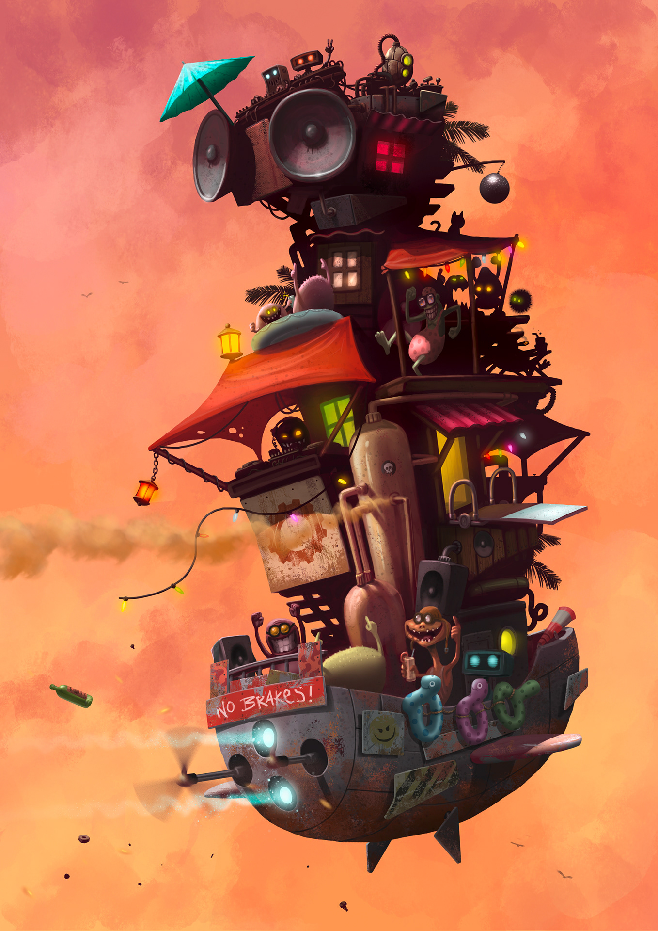 Diese mechanischen Kollegen mögen es wahlweise laut und basslastig, oder ganz easy und gechillt. Illustrationen für den Club A.R.M. in Kassel.